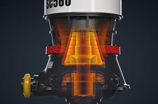 單缸圓錐破碎機(jī)工作時(shí),電機(jī)帶動(dòng)破碎機(jī)的小齒輪,小齒輪帶動(dòng)大齒輪,大齒輪組件帶動(dòng)偏心套組件和主軸組件以理論垂直線為中心,在銅襯套內(nèi)公轉(zhuǎn),主軸組件在偏心銅套內(nèi)以主軸的中心線可以實(shí)現(xiàn)自轉(zhuǎn)。當(dāng)物料加入到破碎腔后,主軸總成在物料的阻力下在偏心銅套內(nèi)緩慢的自轉(zhuǎn)。內(nèi)錐的運(yùn)行軌跡看起來是在破碎腔內(nèi)來回?cái)[動(dòng),同時(shí)緩慢的旋轉(zhuǎn)。物料被擺動(dòng)的內(nèi)錐擠壓破碎,破碎出的物料從而排料口排出。